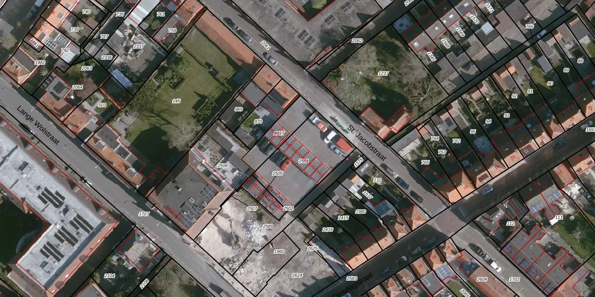 St. Jacobstraat 1-G5 is gelegen op kadastraal perceel SLU00I2501. Deze kadastrale aanduiding is uniek en wordt gebruikt door het Kadaster om eigendomsrechten en andere zakelijke rechten vast te leggen. Het perceel maakt onderdeel uit van de kadastrale gemeente Sluis.