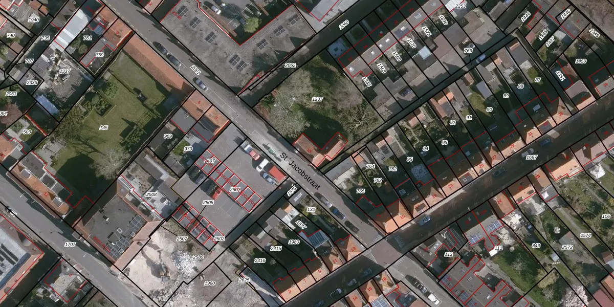 St. Jacobstraat 18 is gelegen op kadastraal perceel SLU00I1237. Deze kadastrale aanduiding is uniek en wordt gebruikt door het Kadaster om eigendomsrechten en andere zakelijke rechten vast te leggen. Het perceel maakt onderdeel uit van de kadastrale gemeente Sluis.