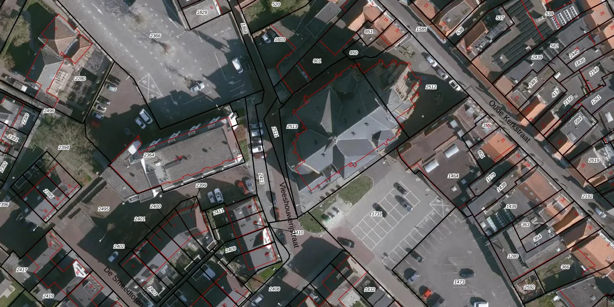 Vleeshouwerijstraat 15 is gelegen op kadastraal perceel SLU00I2513. Deze kadastrale aanduiding is uniek en wordt gebruikt door het Kadaster om eigendomsrechten en andere zakelijke rechten vast te leggen. Het perceel maakt onderdeel uit van de kadastrale gemeente Sluis.