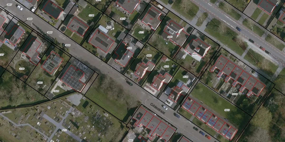 Gildestraat 12 is gelegen op kadastraal perceel TNZ00G4482. Deze kadastrale aanduiding is uniek en wordt gebruikt door het Kadaster om eigendomsrechten en andere zakelijke rechten vast te leggen. Het perceel maakt onderdeel uit van de kadastrale gemeente Terneuzen.