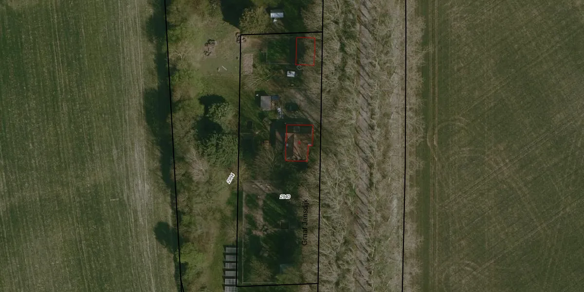 Het perceel waarop Graaf Jansdijk 3 staat heeft een oppervlakte van 2415 m². Dit is een zeer groot perceel. De perceeloppervlakte wordt geregistreerd door het Kadaster. Gedetailleerde informatie over de maten van dit perceel kunt u vinden in het rapport Kadastrale kaart met maatvoering van Graaf Jansdijk 3.