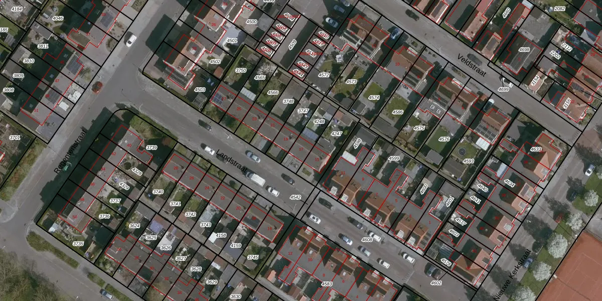 Het perceel waarop Landstraat 17 staat heeft een oppervlakte van 165 m². Dit is een middelgroot perceel. De perceeloppervlakte wordt geregistreerd door het Kadaster. Gedetailleerde informatie over de maten van dit perceel kunt u vinden in het rapport Kadastrale kaart met maatvoering van Landstraat 17.