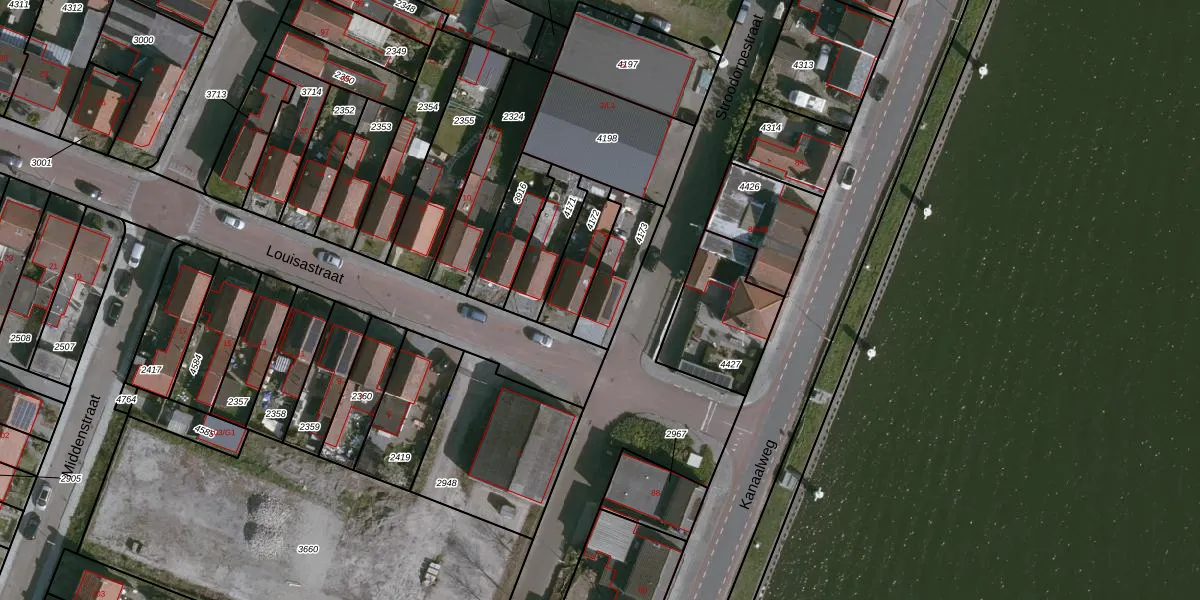 Louisastraat 2 is gelegen op kadastraal perceel TNZ00G4173. Deze kadastrale aanduiding is uniek en wordt gebruikt door het Kadaster om eigendomsrechten en andere zakelijke rechten vast te leggen. Het perceel maakt onderdeel uit van de kadastrale gemeente Terneuzen.