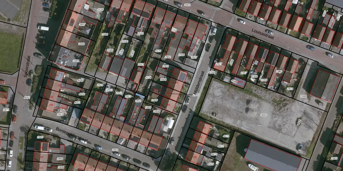 Middenstraat 102 is gelegen op kadastraal perceel TNZ00G2904. Deze kadastrale aanduiding is uniek en wordt gebruikt door het Kadaster om eigendomsrechten en andere zakelijke rechten vast te leggen. Het perceel maakt onderdeel uit van de kadastrale gemeente Terneuzen.