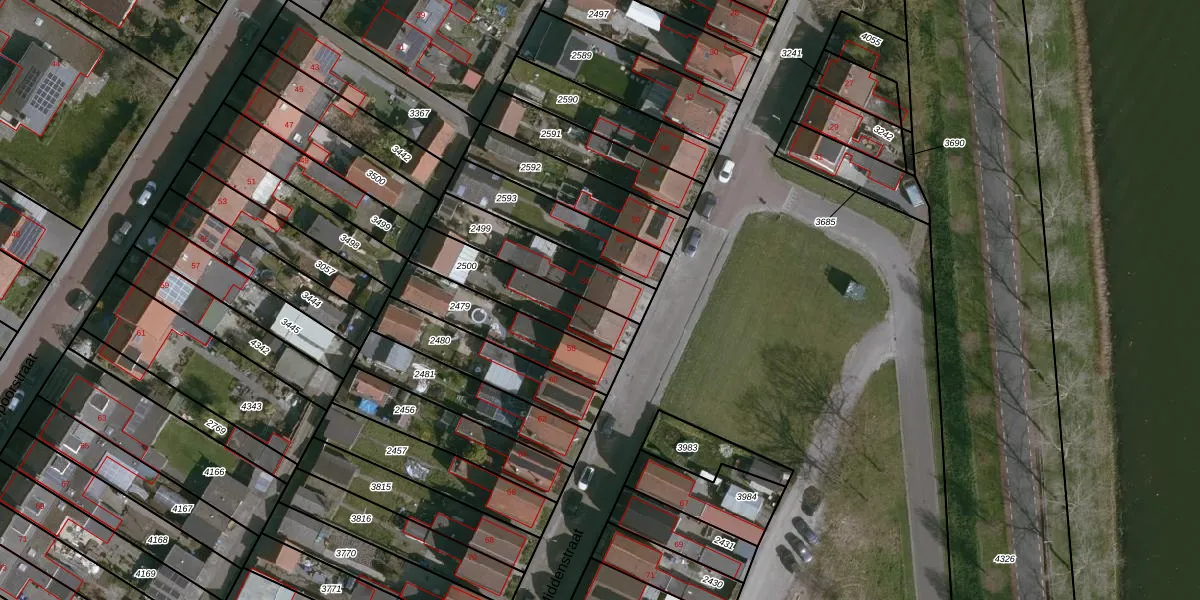 Het perceel waarop Middenstraat 54 staat heeft een oppervlakte van 255 m². Dit is een middelgroot perceel. De perceeloppervlakte wordt geregistreerd door het Kadaster. Gedetailleerde informatie over de maten van dit perceel kunt u vinden in het rapport Kadastrale kaart met maatvoering van Middenstraat 54.