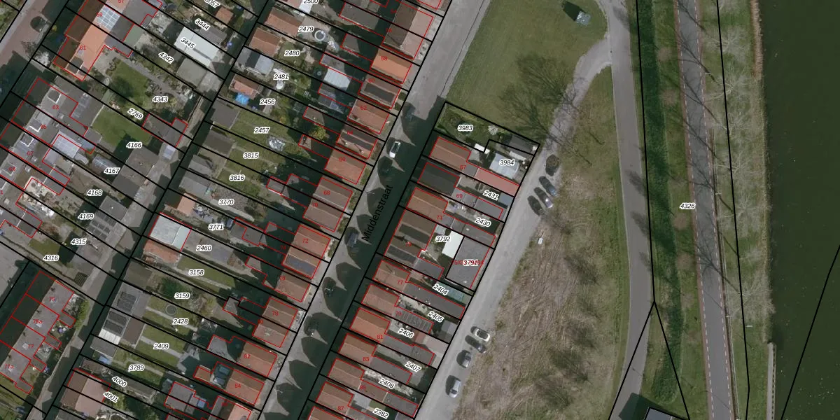 Middenstraat 71 is gelegen op kadastraal perceel TNZ00G2430. Deze kadastrale aanduiding is uniek en wordt gebruikt door het Kadaster om eigendomsrechten en andere zakelijke rechten vast te leggen. Het perceel maakt onderdeel uit van de kadastrale gemeente Terneuzen.