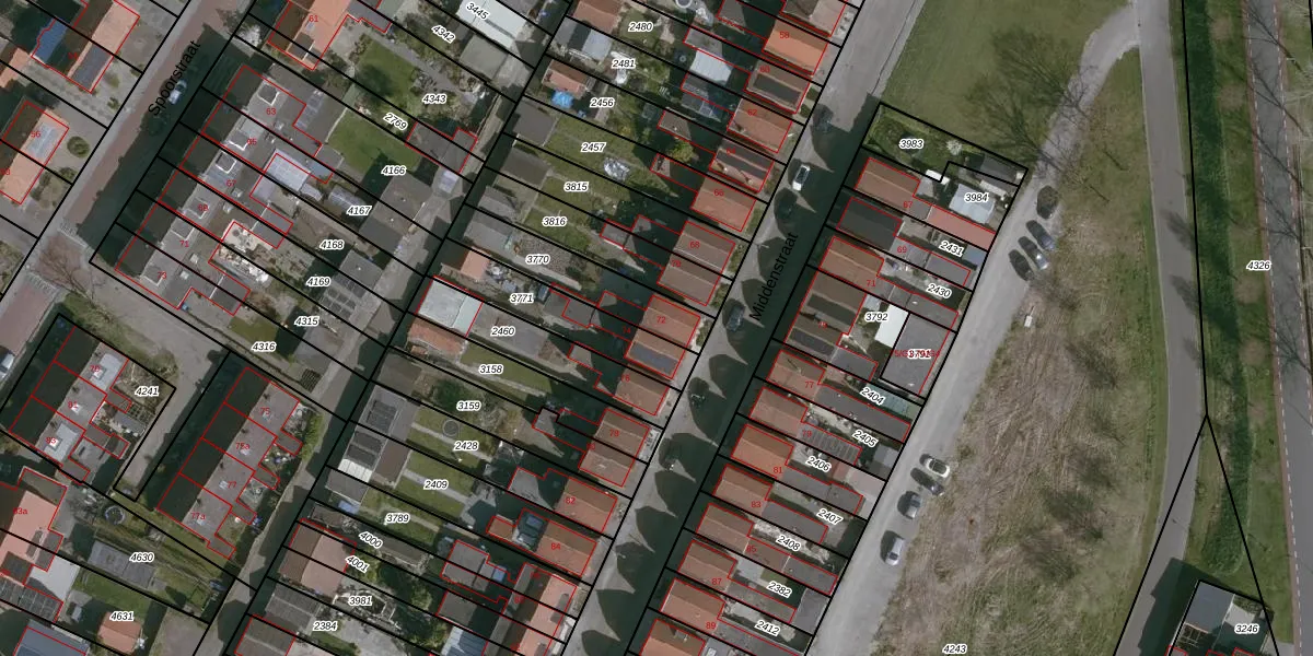 Middenstraat 72 is gelegen op kadastraal perceel TNZ00G3770. Deze kadastrale aanduiding is uniek en wordt gebruikt door het Kadaster om eigendomsrechten en andere zakelijke rechten vast te leggen. Het perceel maakt onderdeel uit van de kadastrale gemeente Terneuzen.