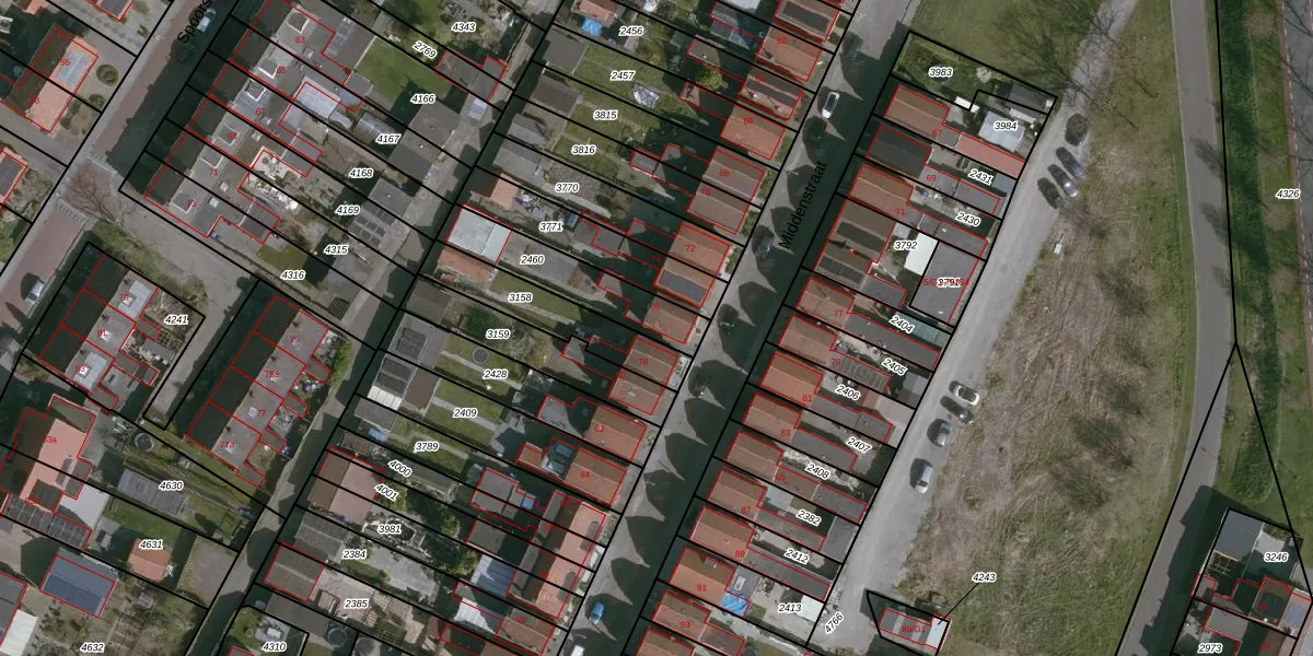 Middenstraat 76 is gelegen op kadastraal perceel TNZ00G2460. Deze kadastrale aanduiding is uniek en wordt gebruikt door het Kadaster om eigendomsrechten en andere zakelijke rechten vast te leggen. Het perceel maakt onderdeel uit van de kadastrale gemeente Terneuzen.