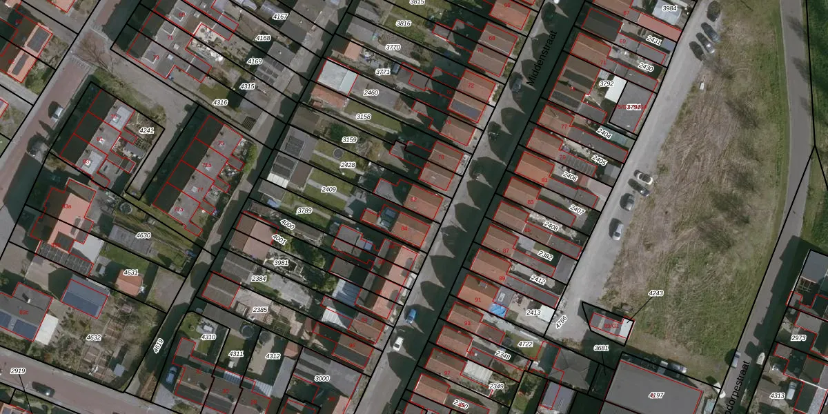 Middenstraat 82 is gelegen op kadastraal perceel TNZ00G2428. Deze kadastrale aanduiding is uniek en wordt gebruikt door het Kadaster om eigendomsrechten en andere zakelijke rechten vast te leggen. Het perceel maakt onderdeel uit van de kadastrale gemeente Terneuzen.