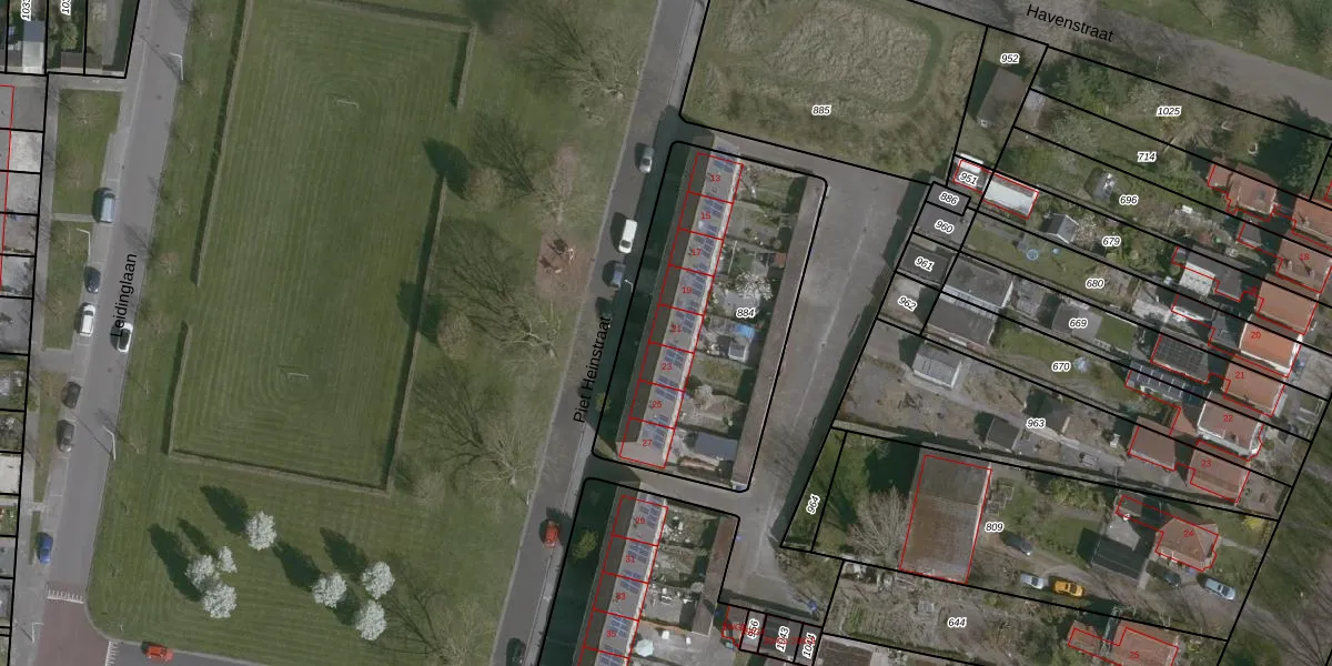 Het perceel waarop Piet Heinstraat 21 staat heeft een oppervlakte van 1155 m². Dit is een zeer groot perceel. De perceeloppervlakte wordt geregistreerd door het Kadaster. Gedetailleerde informatie over de maten van dit perceel kunt u vinden in het rapport Kadastrale kaart met maatvoering van Piet Heinstraat 21.