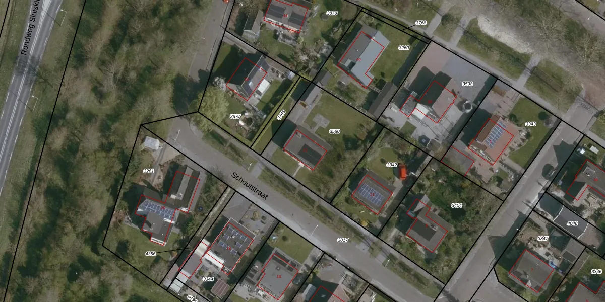 Schoutstraat 13 is gelegen op kadastraal perceel TNZ00G3580. Deze kadastrale aanduiding is uniek en wordt gebruikt door het Kadaster om eigendomsrechten en andere zakelijke rechten vast te leggen. Het perceel maakt onderdeel uit van de kadastrale gemeente Terneuzen.