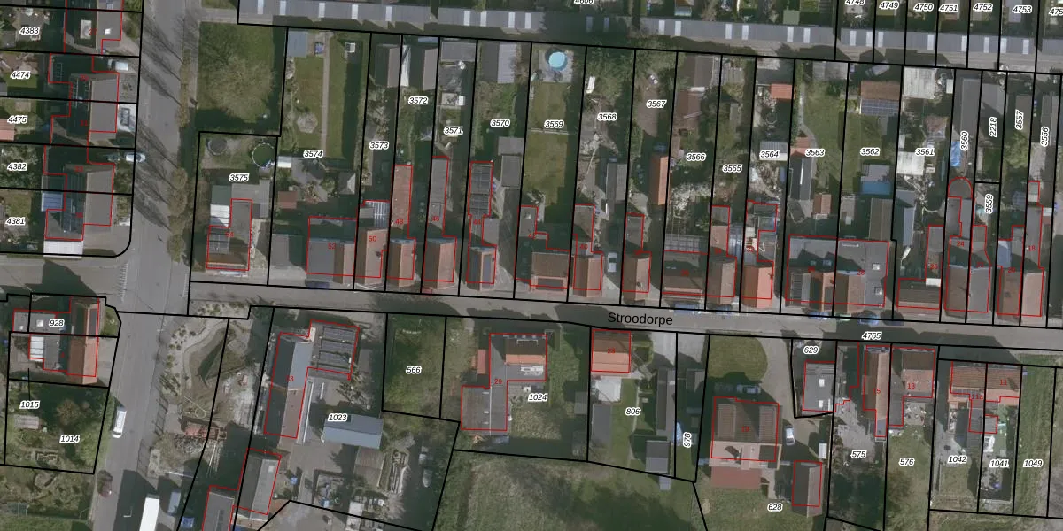 Stroodorpe 42 is gelegen op kadastraal perceel TNZ00G3569. Deze kadastrale aanduiding is uniek en wordt gebruikt door het Kadaster om eigendomsrechten en andere zakelijke rechten vast te leggen. Het perceel maakt onderdeel uit van de kadastrale gemeente Terneuzen.