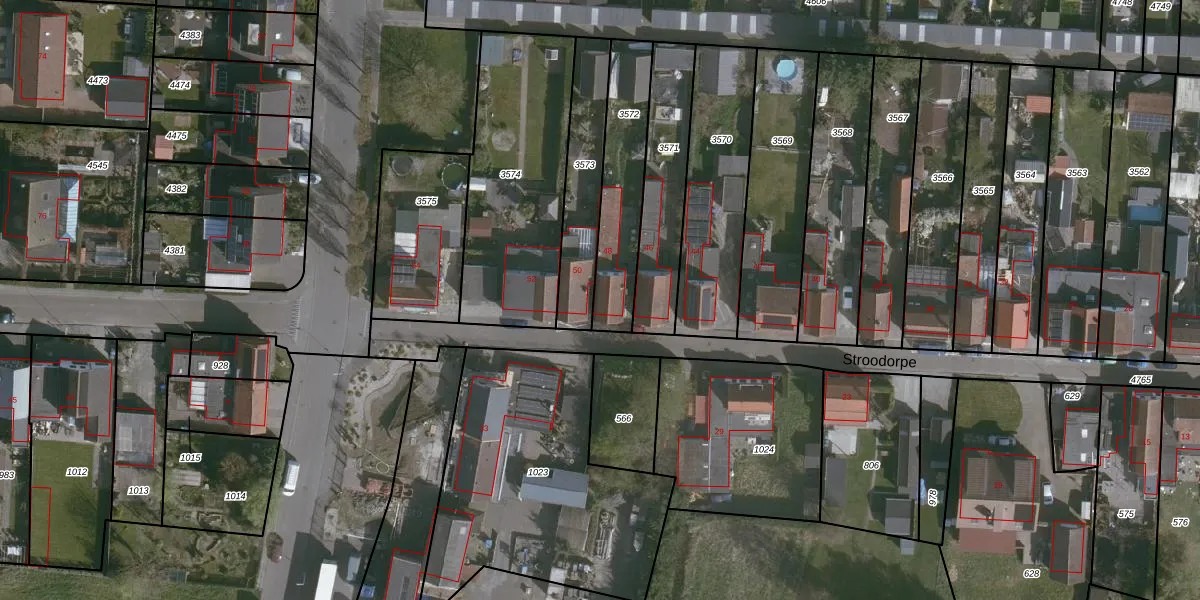 Stroodorpe 48 is gelegen op kadastraal perceel TNZ00G3572. Deze kadastrale aanduiding is uniek en wordt gebruikt door het Kadaster om eigendomsrechten en andere zakelijke rechten vast te leggen. Het perceel maakt onderdeel uit van de kadastrale gemeente Terneuzen.