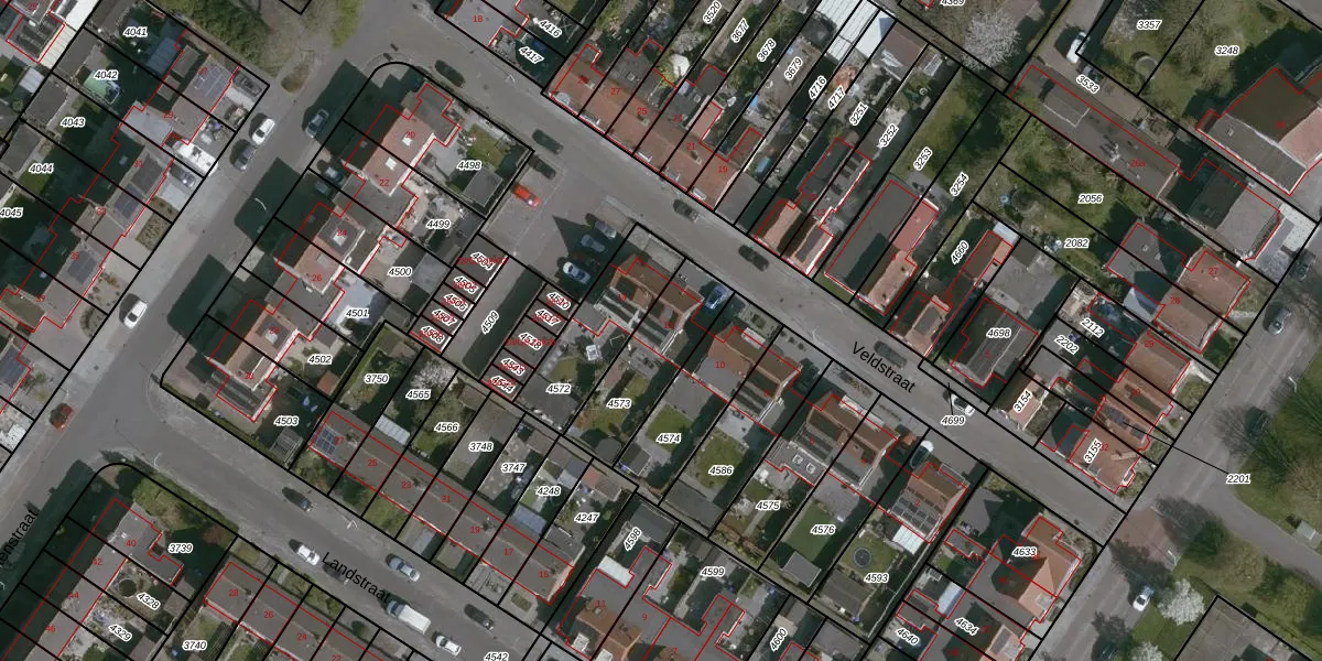 Gebruik de zoekbalk of klik op een perceel voor informatie over de adressen binnen dit perceel.