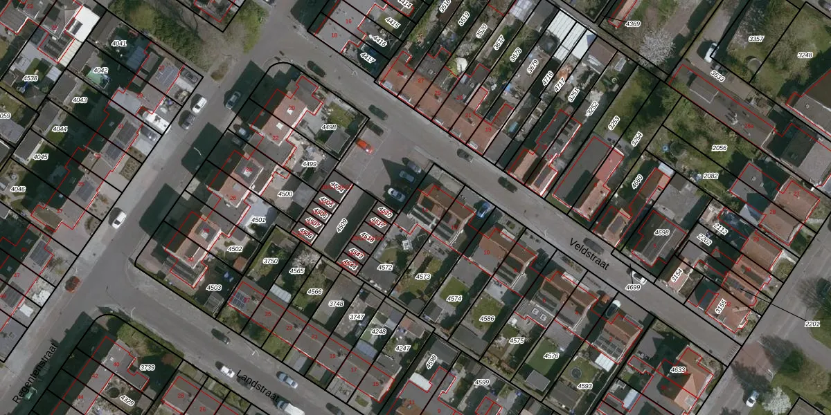 Veldstraat 14 is gelegen op kadastraal perceel TNZ00G4572. Deze kadastrale aanduiding is uniek en wordt gebruikt door het Kadaster om eigendomsrechten en andere zakelijke rechten vast te leggen. Het perceel maakt onderdeel uit van de kadastrale gemeente Terneuzen.