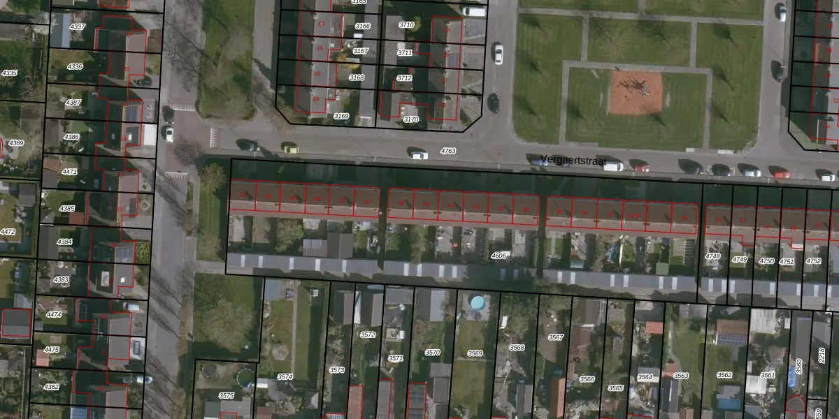 Het perceel waarop Vergaertstraat 46 staat heeft een oppervlakte van 3152 m². Dit is een zeer groot perceel. De perceeloppervlakte wordt geregistreerd door het Kadaster. Gedetailleerde informatie over de maten van dit perceel kunt u vinden in het rapport Kadastrale kaart met maatvoering van Vergaertstraat 46.