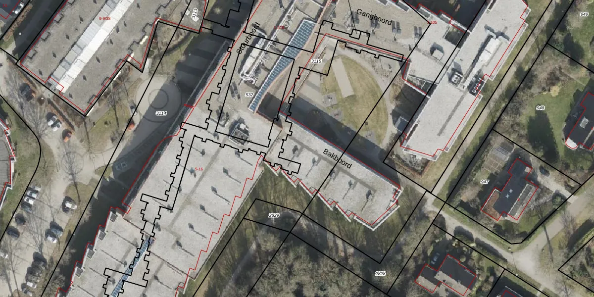 Het perceel waarop Bakboord 5 staat heeft een oppervlakte van 7502 m². Dit is een zeer groot perceel. De perceeloppervlakte wordt geregistreerd door het Kadaster. Gedetailleerde informatie over de maten van dit perceel kunt u vinden in het rapport Kadastrale kaart met maatvoering van Bakboord 5.