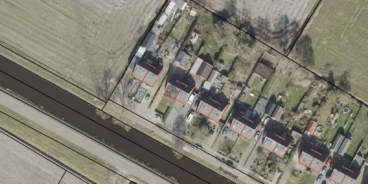 Het perceel waarop Brugstraat 18 staat heeft een oppervlakte van 1,2 ha. Dit is een zeer groot perceel. De perceeloppervlakte wordt geregistreerd door het Kadaster. Gedetailleerde informatie over de maten van dit perceel kunt u vinden in het rapport Kadastrale kaart met maatvoering van Brugstraat 18.