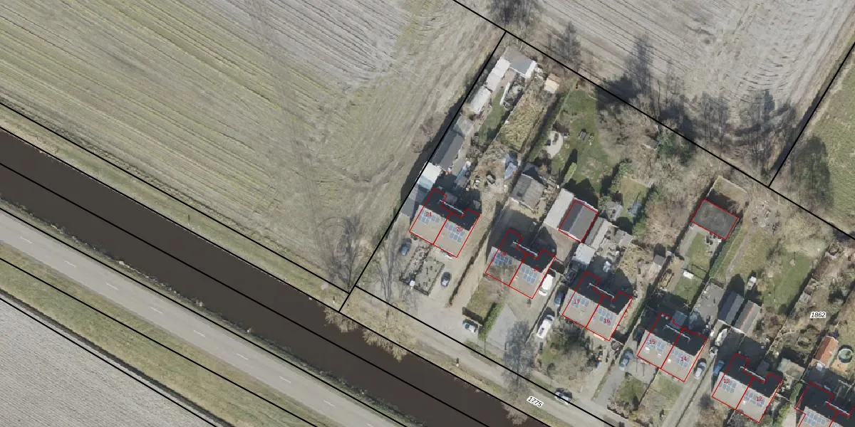 Het perceel waarop Brugstraat 21 staat heeft een oppervlakte van 1,2 ha. Dit is een zeer groot perceel. De perceeloppervlakte wordt geregistreerd door het Kadaster. Gedetailleerde informatie over de maten van dit perceel kunt u vinden in het rapport Kadastrale kaart met maatvoering van Brugstraat 21.