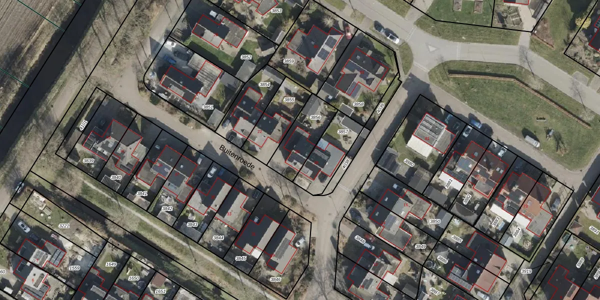 Buitenroede 20 is gelegen op kadastraal perceel SDE01G3856. Deze kadastrale aanduiding is uniek en wordt gebruikt door het Kadaster om eigendomsrechten en andere zakelijke rechten vast te leggen. Het perceel maakt onderdeel uit van de kadastrale gemeente Smilde.