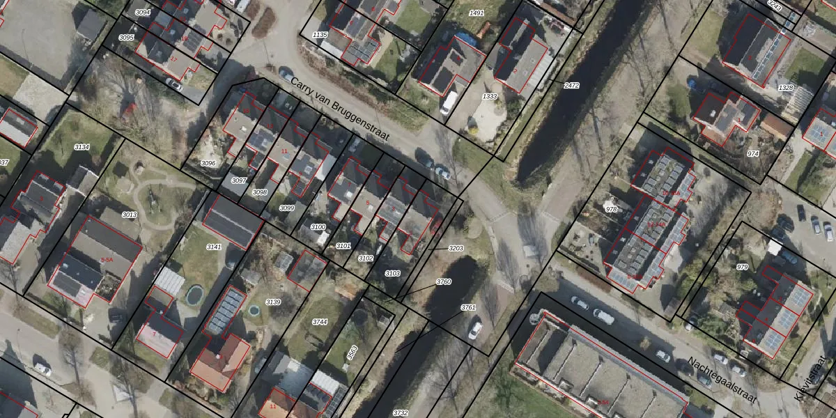 Carry van Bruggenstraat 1 is gelegen op kadastraal perceel SDE01L3103. Deze kadastrale aanduiding is uniek en wordt gebruikt door het Kadaster om eigendomsrechten en andere zakelijke rechten vast te leggen. Het perceel maakt onderdeel uit van de kadastrale gemeente Smilde.