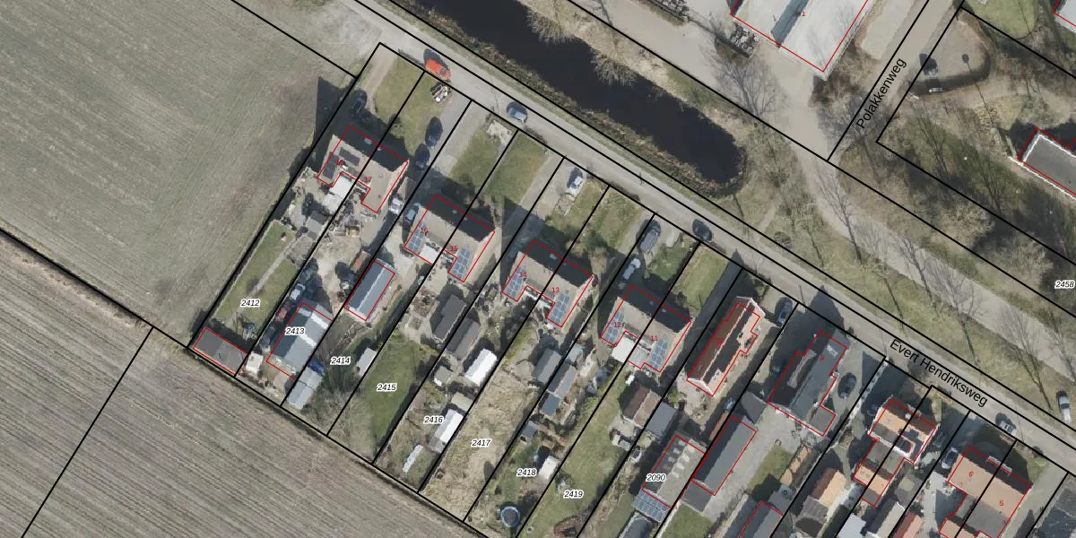Evert Hendriksweg 14 is gelegen op kadastraal perceel SDE01H2416. Deze kadastrale aanduiding is uniek en wordt gebruikt door het Kadaster om eigendomsrechten en andere zakelijke rechten vast te leggen. Het perceel maakt onderdeel uit van de kadastrale gemeente Smilde.