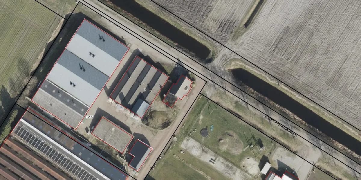 Het perceel waarop Evert Hendriksweg 36 staat heeft een oppervlakte van 5565 m². Dit is een zeer groot perceel. De perceeloppervlakte wordt geregistreerd door het Kadaster. Gedetailleerde informatie over de maten van dit perceel kunt u vinden in het rapport Kadastrale kaart met maatvoering van Evert Hendriksweg 36.