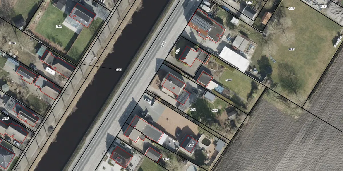 Het perceel waarop Hoofdweg 44 staat heeft een oppervlakte van 1069 m². Dit is een zeer groot perceel. De perceeloppervlakte wordt geregistreerd door het Kadaster. Gedetailleerde informatie over de maten van dit perceel kunt u vinden in het rapport Kadastrale kaart met maatvoering van Hoofdweg 44.