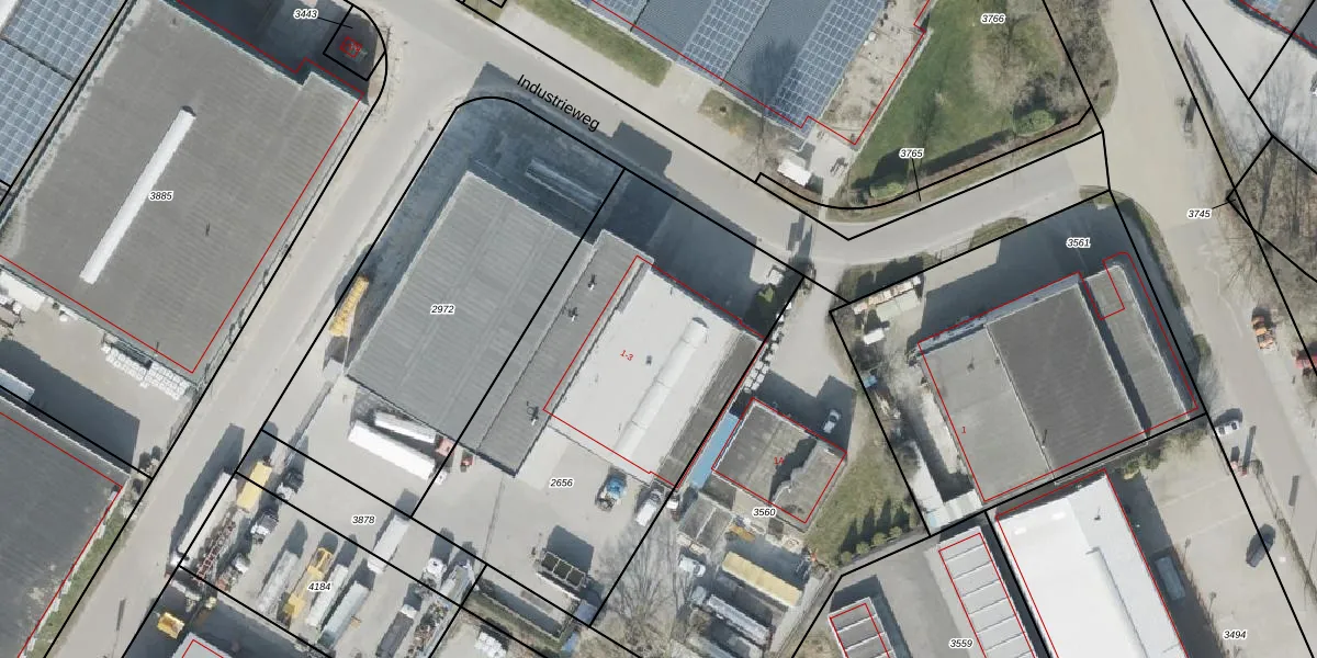 Het perceel waarop Industrieweg 1 staat heeft een oppervlakte van 1986 m². Dit is een zeer groot perceel. De perceeloppervlakte wordt geregistreerd door het Kadaster. Gedetailleerde informatie over de maten van dit perceel kunt u vinden in het rapport Kadastrale kaart met maatvoering van Industrieweg 1.