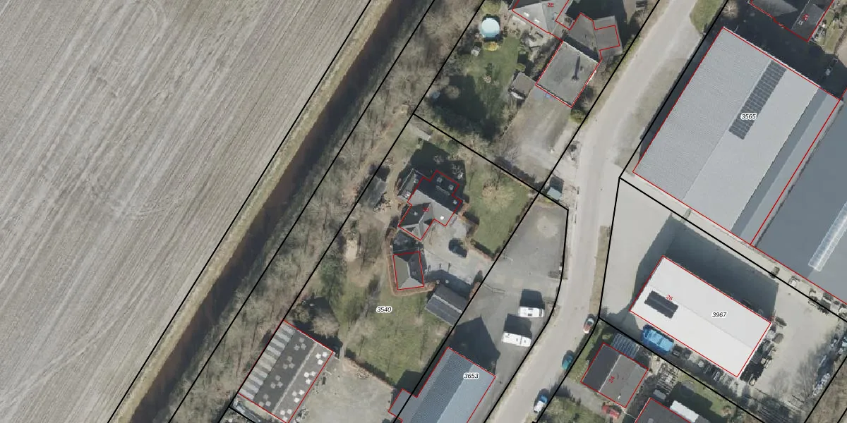 Het perceel waarop Industrieweg 39 staat heeft een oppervlakte van 2877 m². Dit is een zeer groot perceel. De perceeloppervlakte wordt geregistreerd door het Kadaster. Gedetailleerde informatie over de maten van dit perceel kunt u vinden in het rapport Kadastrale kaart met maatvoering van Industrieweg 39.