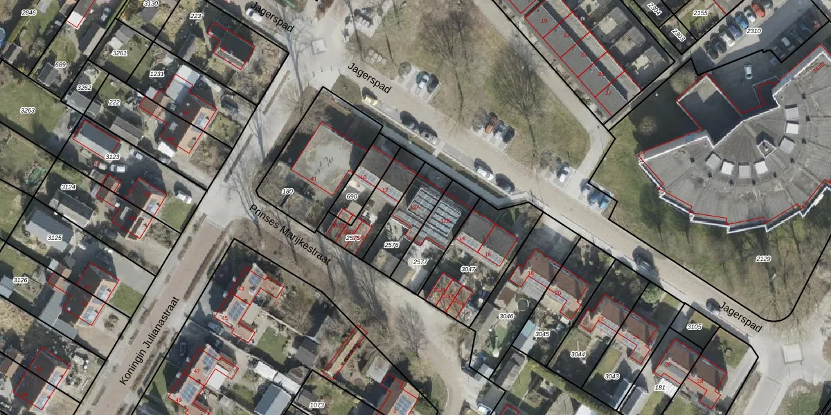 Jagerspad 12-A is gelegen op kadastraal perceel SDE01L2576. Deze kadastrale aanduiding is uniek en wordt gebruikt door het Kadaster om eigendomsrechten en andere zakelijke rechten vast te leggen. Het perceel maakt onderdeel uit van de kadastrale gemeente Smilde.