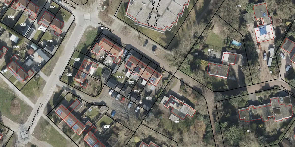 Het perceel waarop Jagerspad 38 staat heeft een oppervlakte van 183 m². Dit is een middelgroot perceel. De perceeloppervlakte wordt geregistreerd door het Kadaster. Gedetailleerde informatie over de maten van dit perceel kunt u vinden in het rapport Kadastrale kaart met maatvoering van Jagerspad 38.