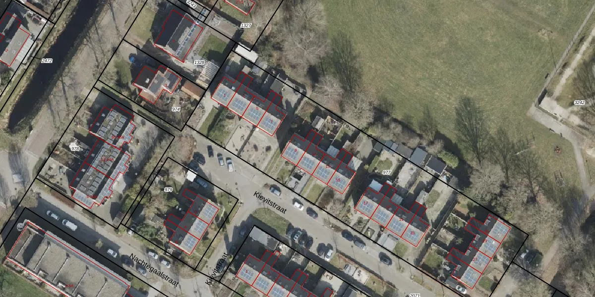 Het perceel waarop Kievitstraat 9 staat heeft een oppervlakte van 3425 m². Dit is een zeer groot perceel. De perceeloppervlakte wordt geregistreerd door het Kadaster. Gedetailleerde informatie over de maten van dit perceel kunt u vinden in het rapport Kadastrale kaart met maatvoering van Kievitstraat 9.