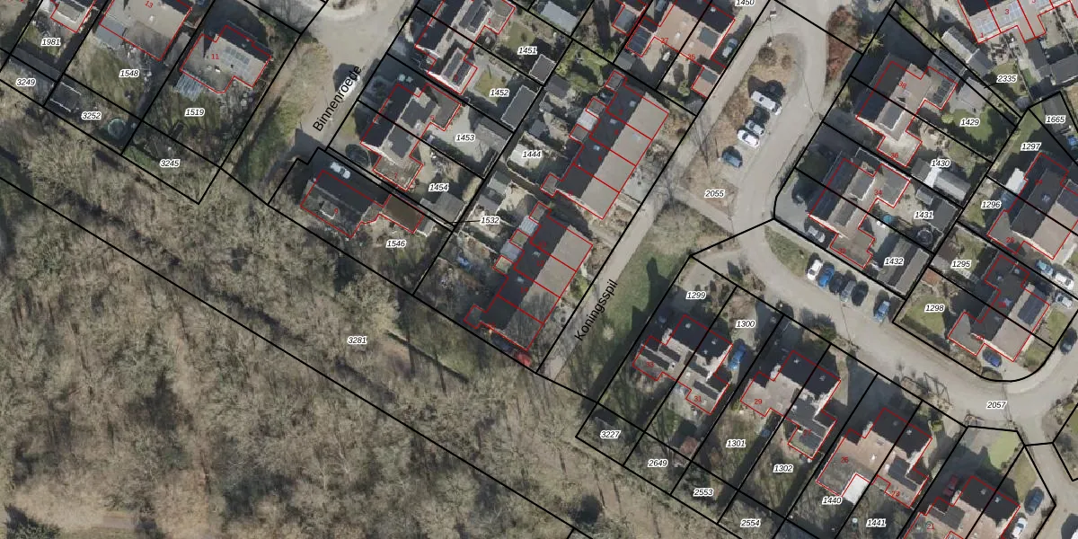 Het perceel waarop Koningsspil 12 staat heeft een oppervlakte van 1518 m². Dit is een zeer groot perceel. De perceeloppervlakte wordt geregistreerd door het Kadaster. Gedetailleerde informatie over de maten van dit perceel kunt u vinden in het rapport Kadastrale kaart met maatvoering van Koningsspil 12.