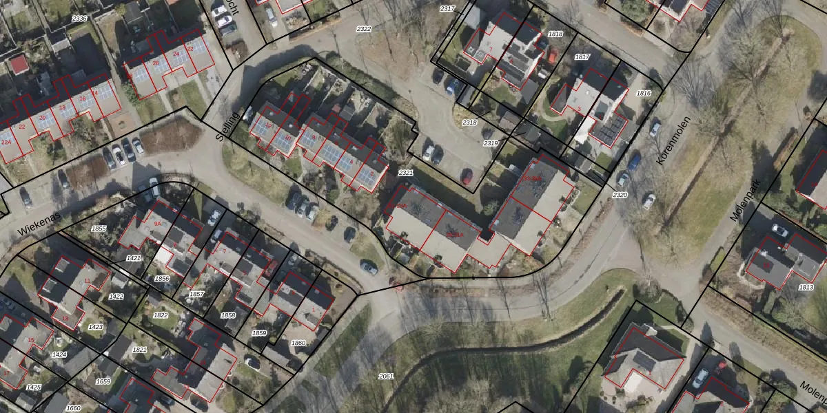 Het perceel waarop Korenmolen 21 staat heeft een oppervlakte van 2292 m². Dit is een zeer groot perceel. De perceeloppervlakte wordt geregistreerd door het Kadaster. Gedetailleerde informatie over de maten van dit perceel kunt u vinden in het rapport Kadastrale kaart met maatvoering van Korenmolen 21.
