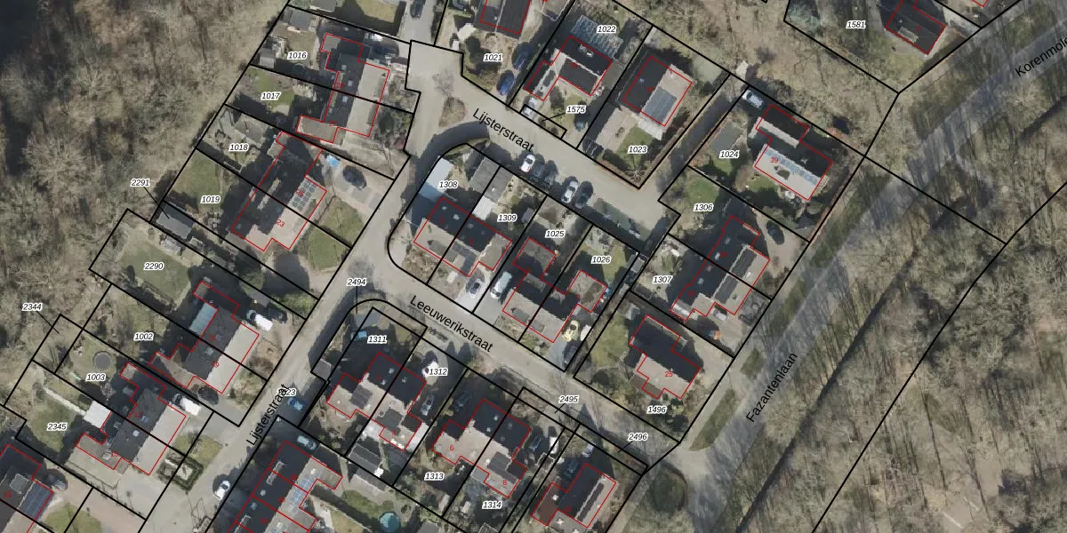 Gebruik de zoekbalk of klik op een perceel voor informatie over de adressen binnen dit perceel.