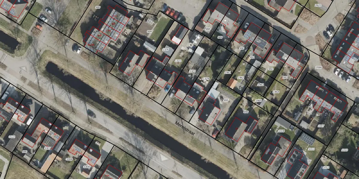 Het perceel waarop Merelstraat 13 staat heeft een oppervlakte van 428 m². Dit is een groot perceel. De perceeloppervlakte wordt geregistreerd door het Kadaster. Gedetailleerde informatie over de maten van dit perceel kunt u vinden in het rapport Kadastrale kaart met maatvoering van Merelstraat 13.