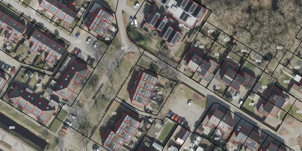 Het perceel waarop Merelstraat 2-A staat heeft een oppervlakte van 777 m². Dit is een groot perceel. De perceeloppervlakte wordt geregistreerd door het Kadaster. Gedetailleerde informatie over de maten van dit perceel kunt u vinden in het rapport Kadastrale kaart met maatvoering van Merelstraat 2-A.