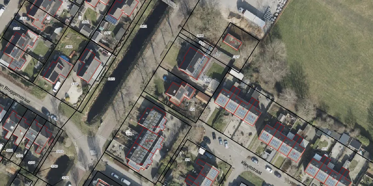 Gebruik de zoekbalk of klik op een perceel voor informatie over de adressen binnen dit perceel.