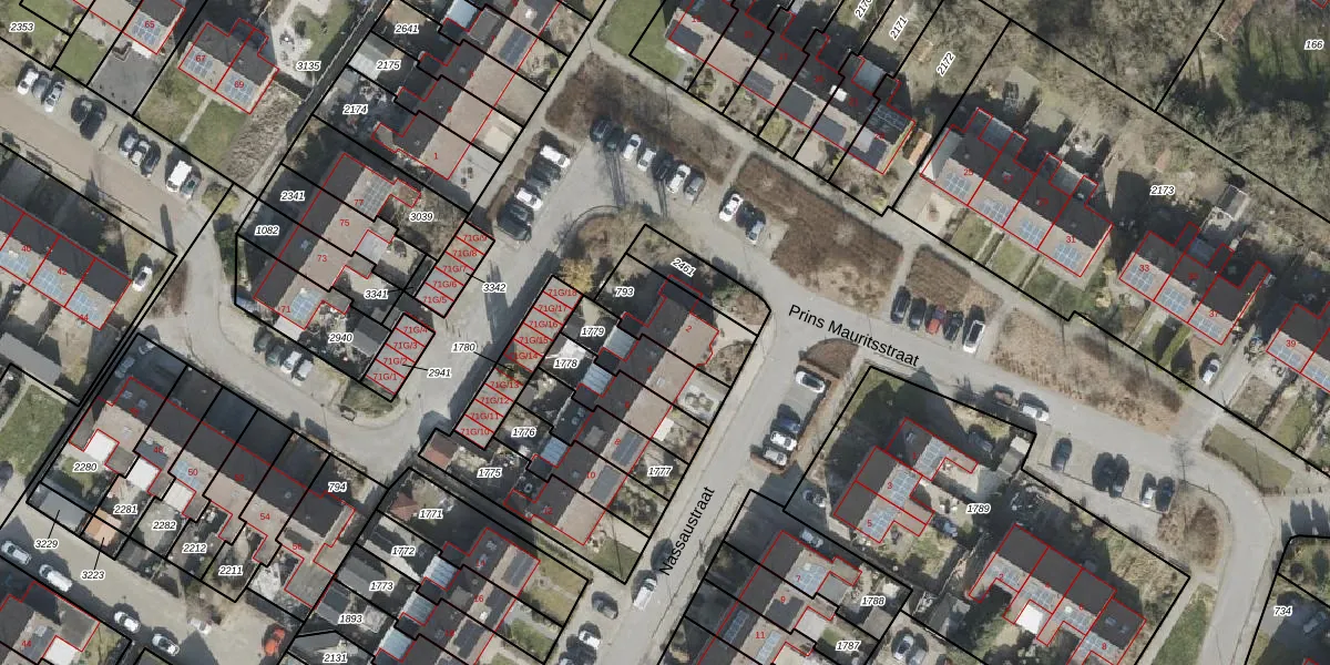 Gebruik de zoekbalk of klik op een perceel voor informatie over de adressen binnen dit perceel.