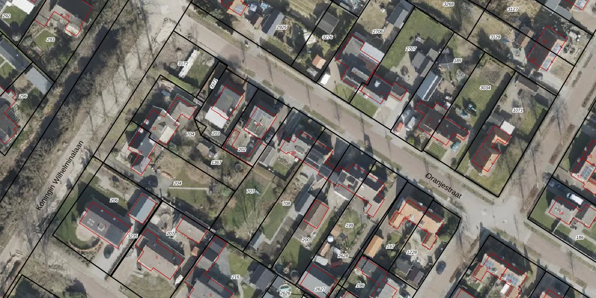 Het perceel waarop Oranjestraat 2-B staat heeft een oppervlakte van 663 m². Dit is een groot perceel. De perceeloppervlakte wordt geregistreerd door het Kadaster. Gedetailleerde informatie over de maten van dit perceel kunt u vinden in het rapport Kadastrale kaart met maatvoering van Oranjestraat 2-B.