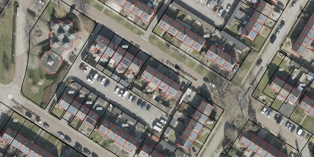 Het perceel waarop Prins Bernhardstraat 30 staat heeft een oppervlakte van 2150 m². Dit is een zeer groot perceel. De perceeloppervlakte wordt geregistreerd door het Kadaster. Gedetailleerde informatie over de maten van dit perceel kunt u vinden in het rapport Kadastrale kaart met maatvoering van Prins Bernhardstraat 30.