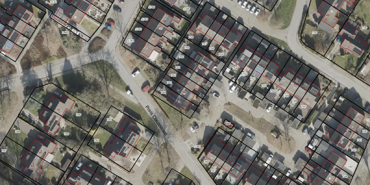 Het perceel waarop Prins Clausstraat 23 staat heeft een oppervlakte van 121 m². Dit is een middelgroot perceel. De perceeloppervlakte wordt geregistreerd door het Kadaster. Gedetailleerde informatie over de maten van dit perceel kunt u vinden in het rapport Kadastrale kaart met maatvoering van Prins Clausstraat 23.