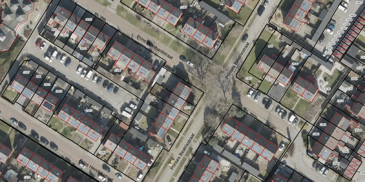 Het perceel waarop Prinses Beatrixstraat 40 staat heeft een oppervlakte van 2150 m². Dit is een zeer groot perceel. De perceeloppervlakte wordt geregistreerd door het Kadaster. Gedetailleerde informatie over de maten van dit perceel kunt u vinden in het rapport Kadastrale kaart met maatvoering van Prinses Beatrixstraat 40.