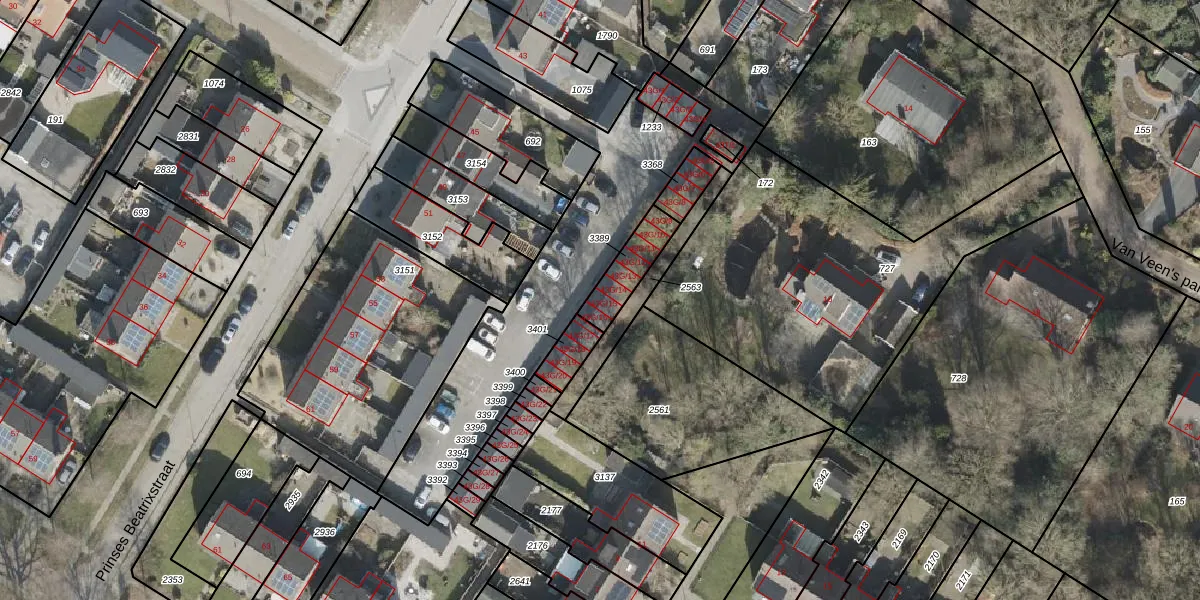 Prinses Beatrixstraat 43-G-15 is gelegen op kadastraal perceel SDE01L3389. Deze kadastrale aanduiding is uniek en wordt gebruikt door het Kadaster om eigendomsrechten en andere zakelijke rechten vast te leggen. Het perceel maakt onderdeel uit van de kadastrale gemeente Smilde.