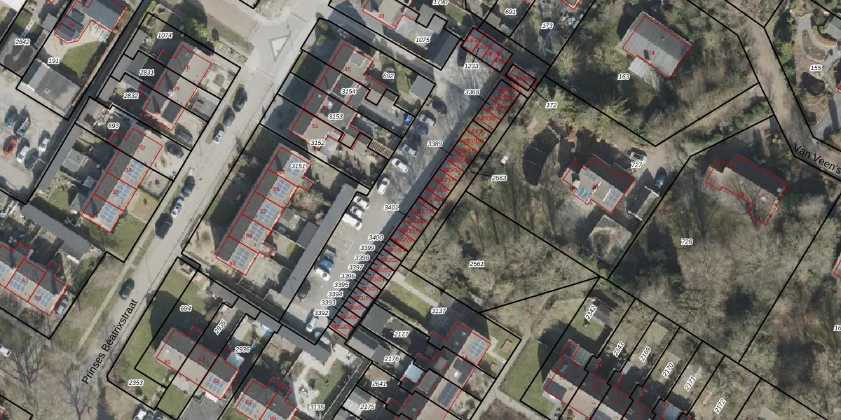 Het perceel waarop Prinses Beatrixstraat 43-G-17 staat heeft een oppervlakte van 72 m². Dit is een klein perceel. De perceeloppervlakte wordt geregistreerd door het Kadaster. Gedetailleerde informatie over de maten van dit perceel kunt u vinden in het rapport Kadastrale kaart met maatvoering van Prinses Beatrixstraat 43-G-17.