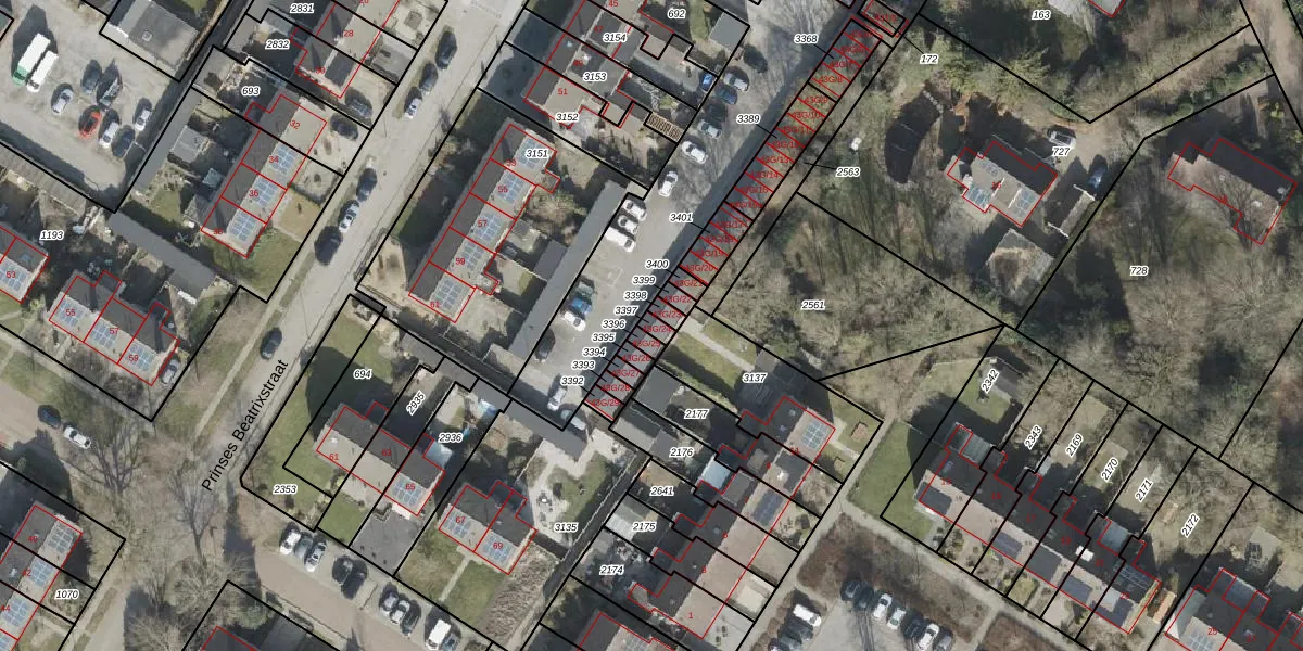 Gebruik de zoekbalk of klik op een perceel voor informatie over de adressen binnen dit perceel.