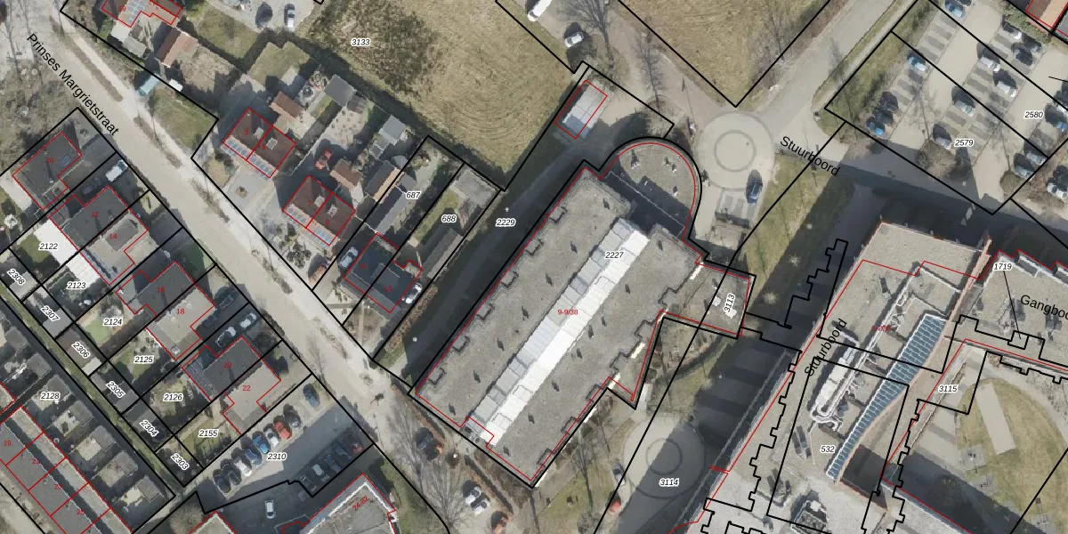Het perceel waarop Prinses Beatrixstraat 9-23 staat heeft een oppervlakte van 1951 m². Dit is een zeer groot perceel. De perceeloppervlakte wordt geregistreerd door het Kadaster. Gedetailleerde informatie over de maten van dit perceel kunt u vinden in het rapport Kadastrale kaart met maatvoering van Prinses Beatrixstraat 9-23.