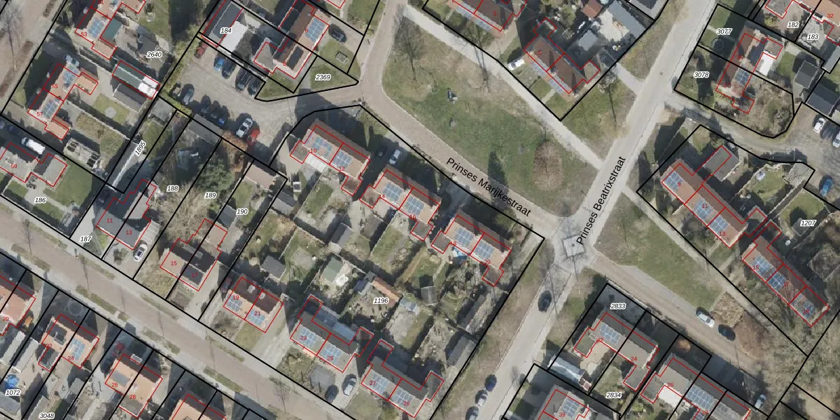 Het perceel waarop Prinses Marijkestraat 16 staat heeft een oppervlakte van 3750 m². Dit is een zeer groot perceel. De perceeloppervlakte wordt geregistreerd door het Kadaster. Gedetailleerde informatie over de maten van dit perceel kunt u vinden in het rapport Kadastrale kaart met maatvoering van Prinses Marijkestraat 16.