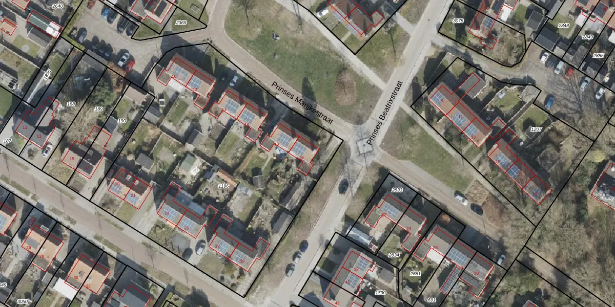 Het perceel waarop Prinses Marijkestraat 20 staat heeft een oppervlakte van 3750 m². Dit is een zeer groot perceel. De perceeloppervlakte wordt geregistreerd door het Kadaster. Gedetailleerde informatie over de maten van dit perceel kunt u vinden in het rapport Kadastrale kaart met maatvoering van Prinses Marijkestraat 20.